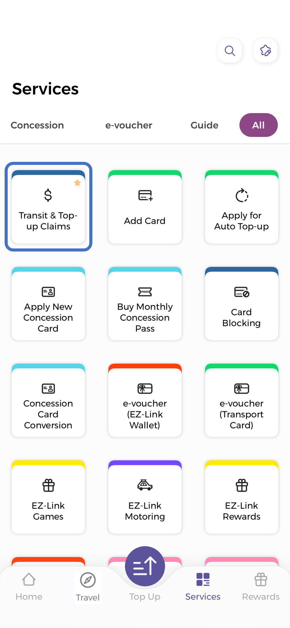 Step 2: Tap "Transit & Top-up Claims" (under "Card Services")