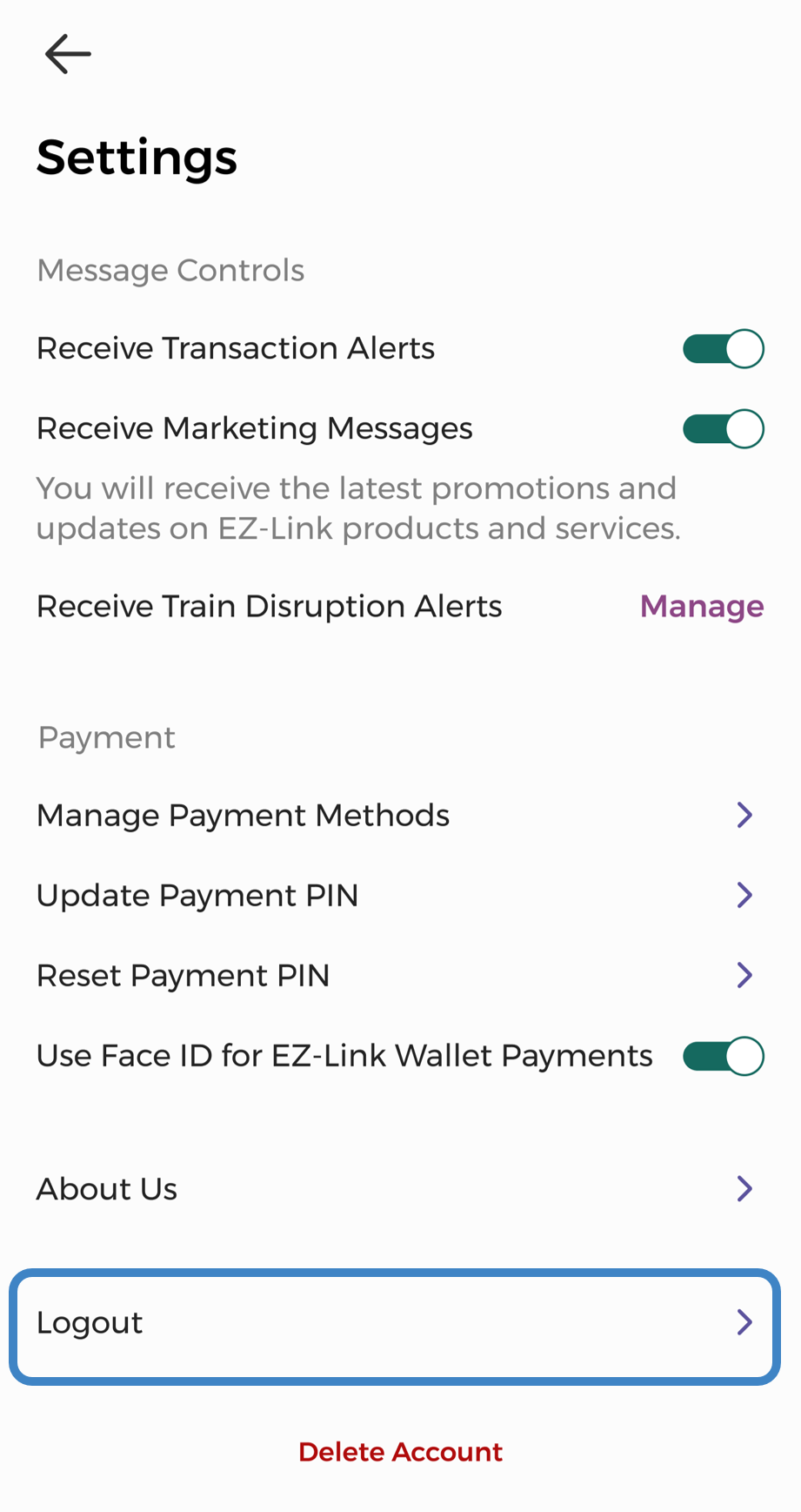 Step 3: Tap "Logout"