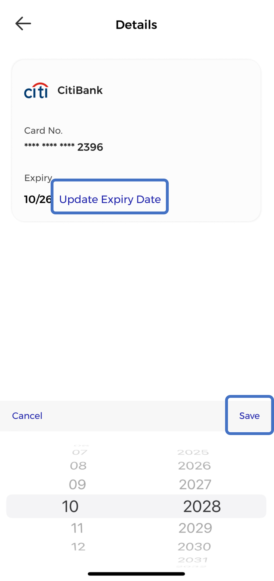 Step 5: Tap "Update Expiry Date" and input the date accordingly before tapping on 'Save"
